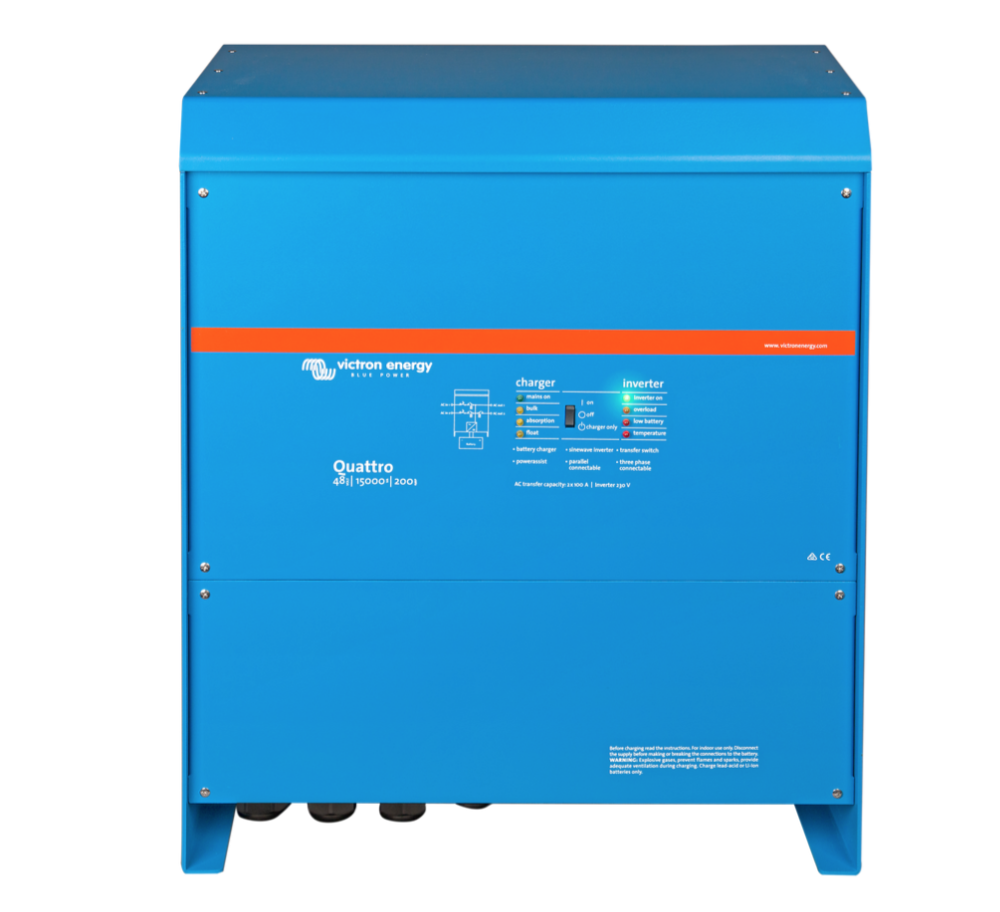 Quattro 48V 15000VA (front) Posted on September 29, 2020 at 3:10 am by admin / Quattro 48V 10000VA 140A 230VAC - (Right) Quattro 48V 15000VA (left)
